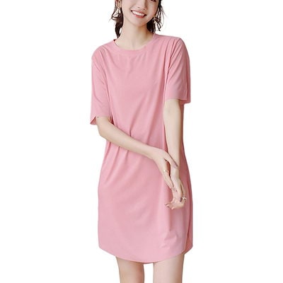 パジャマ ルームワンピース レディース ワンピース ネグリジェ Tシャツワンピ 無地 ルームウェア ゆったり 薄手 半袖 パジャマ 春 夏 秋 部屋着 ルームウェア 寝間着 可愛い ネグリジェ