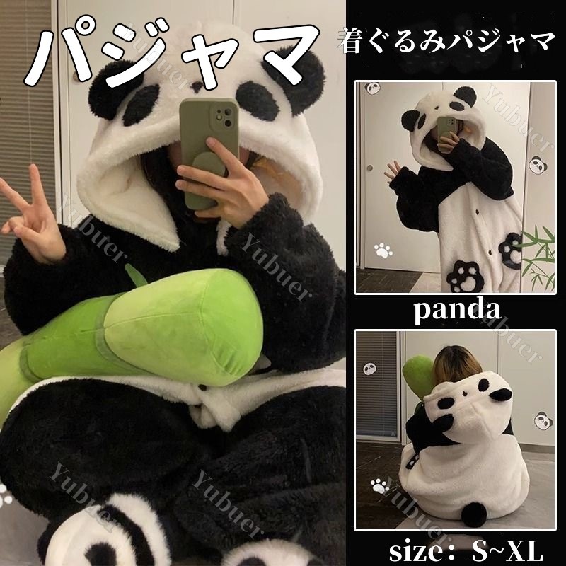 秋冬 ふわふわ 可愛い着ぐるみパジャマ レディース パンダガウン ズボン 二点セット 快適 コーラルフリース裹起毛 ルームウェア セットアップ韓国ファッション 部屋着 フランネル