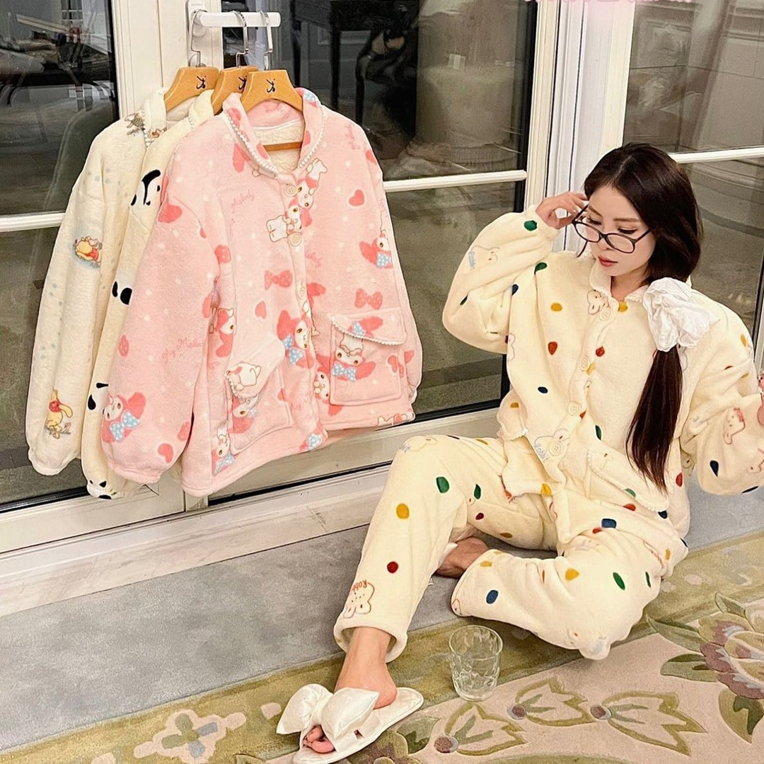 2025新作ルームウェア セットアップ 冬 特厚パジャマ女性冬長袖スーツ保温カーディガン学生部屋着女性外着可能 可愛い パジャマ レディース 秋冬 韓国 部屋着