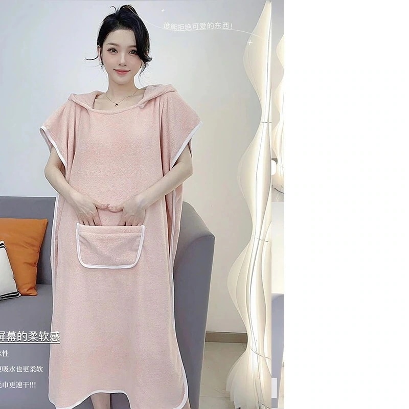 バスタオルホームウェアラブルコーリースフード付きマントバスローブ吸水ウェアニーハイかわいいバススカート女性 バスタオル