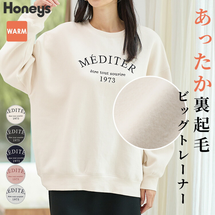 Honeys ロゴ刺繍ビッグトレーナー トップス スウェット 長袖 オーバーサイズ ハニぽか あったか 綿混 トレーナー