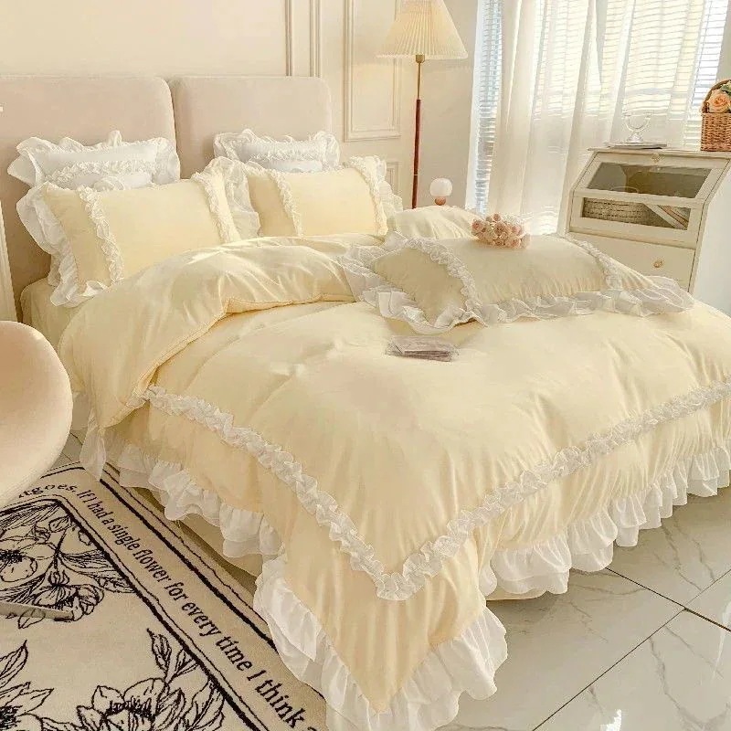 寝具 4ピース布団カバーベッドスカートプリーツ布団カバー寝具 布団カバー