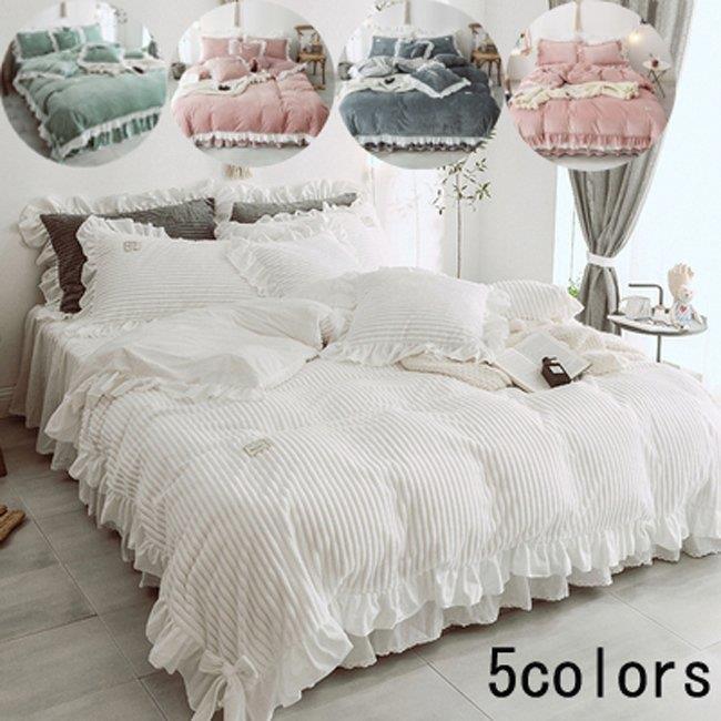 布団カバー 掛け布団カバー 姫系 ベッドスカート 秋冬 フランネル 4点セット 暖かい 新生活 寝具カバーセット ベッド用品 おしゃれ 敷き布団カバー 枕カバー
