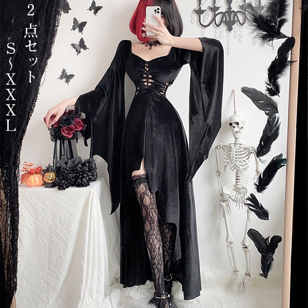 ハロウィン コスプレ 吸血鬼 2点セット 女性 仮装 定番 衣装 大人 悪魔 デビル 吸血鬼 コスチューム 大きいサイズ セクシー ハロウィンコスプレ 女性 ハロウィン仮装 コスプレ衣装 ウィッチ