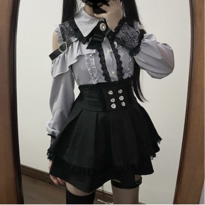 全4カラーオフショルレースブラウス&ミニスカートセット ワンピース