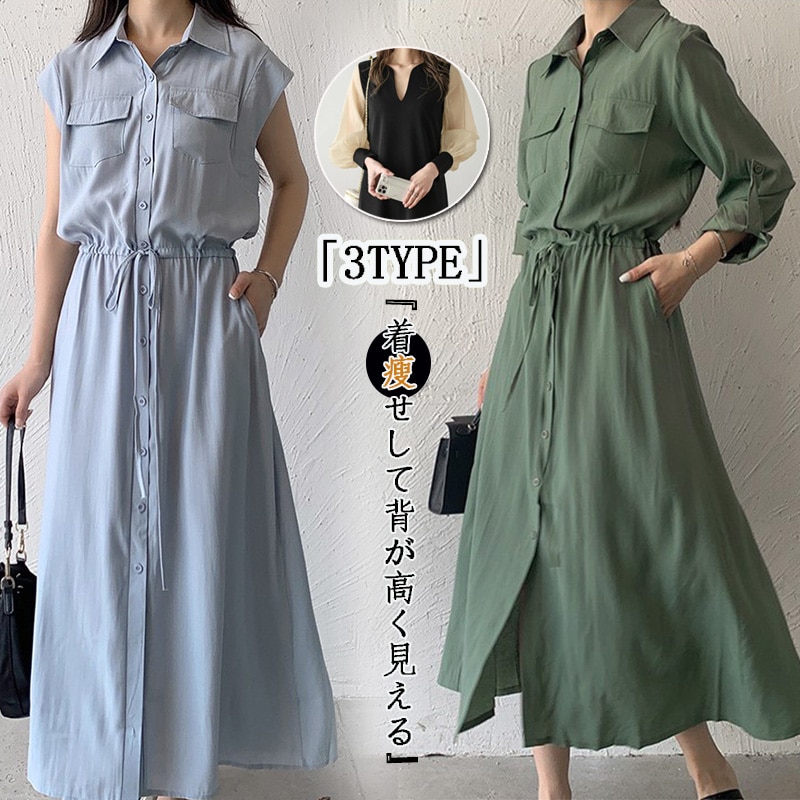 2025春夏 新作 ブラウス レディース 韓国ワンピースドレス 着痩せ ワンピースセミロング カジュアルキャミワンピース 母の日のプレゼント