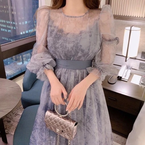 2024新作 夏ワンピース かわいいワンピース ゆったりロリータワンピース シフォンワンピ