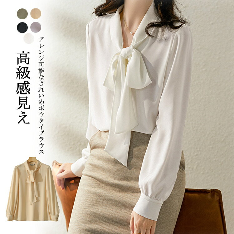 ボウタイブラウス長袖オフィスレディースリボンタイシャツブラウスフォーマルスーツインナートップスボウタイブラウスシャツ白折襟黒春長袖ブラウスギャザー落ち感フォーマルブラウス春ゆったりOL通勤卒業式入学式