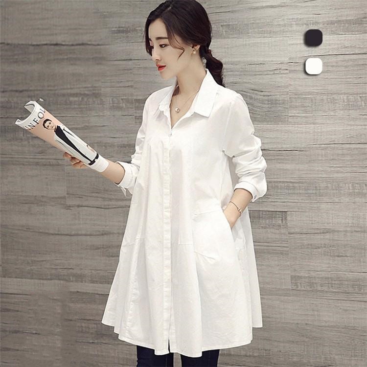 ブラウス シャツ トップス シャツブラウス 前開き レディース ロング 長袖 折り襟 無地 フリル ギャザー フレア裾 体型カバー ゆったり シンプル カジュアル 秋