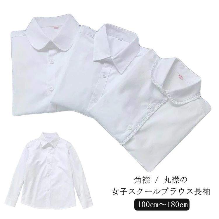 スクールシャツ 女子 長袖 丸襟 角襟 レギュラーカラー 学生服 シャツ UVカット 丸襟ブラウス 制服 レディース ワイシャツ ホワイト 女子用 蛍光白 100cm 110cm 120cm 130c