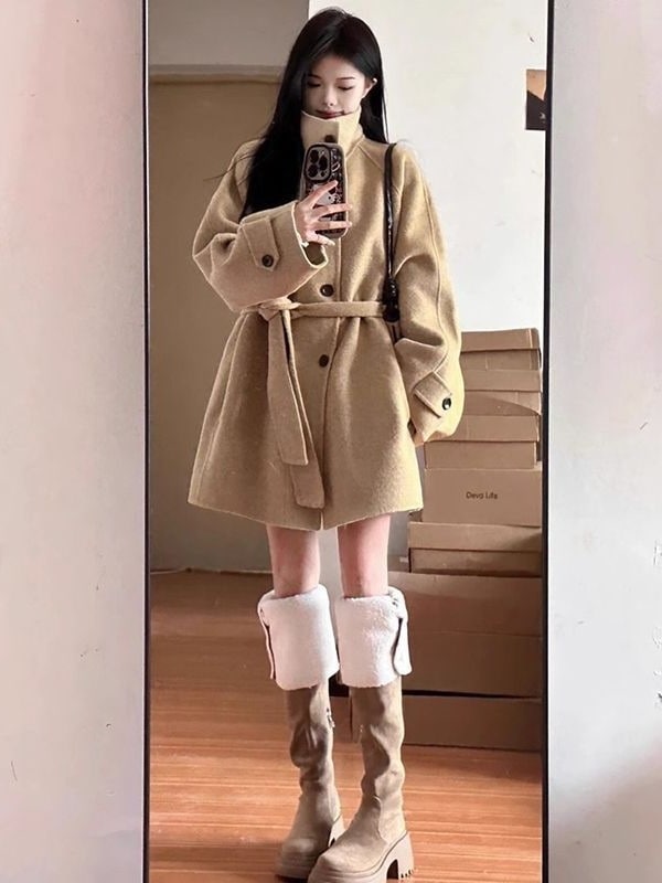 大人っぽチェスターコート 冬アウター 2024秋冬新作ウールジャケットレディース大きいサイズゆったりスリムミディアム丈小さめコートウールジャケット 韓国ファッション
