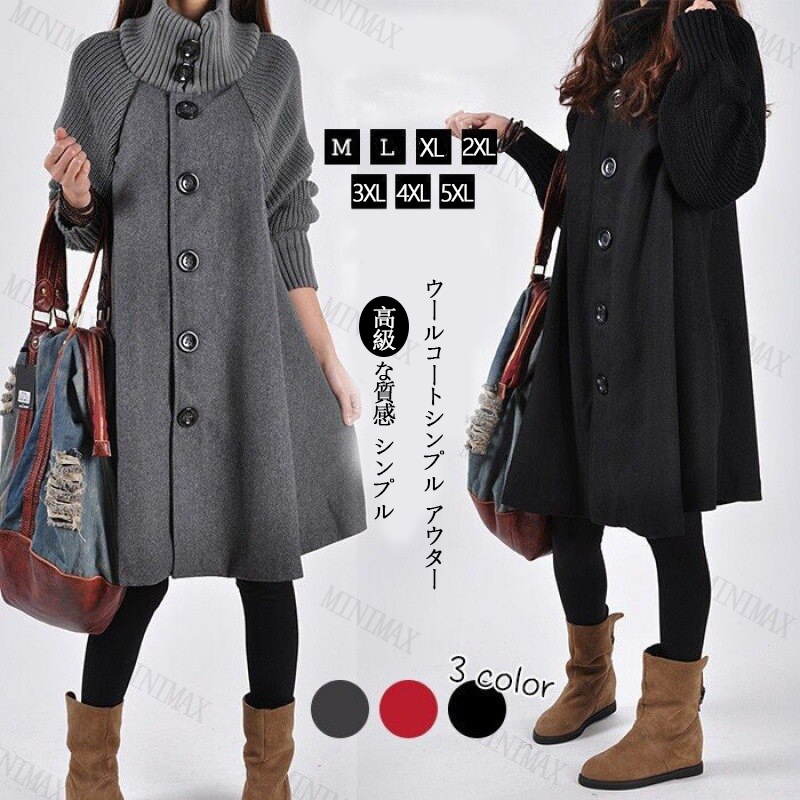 気質 シンプル ウールコートシンプル ロップショルダー アウター レディース カシミヤ ノーカラー コート 体型カバー チェスターコート アウタ一 スーツ 大人