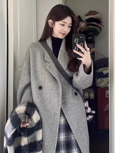 日系 新作 ウールコート ロップショルダー アウター レディース 気質 カシミヤ ノーカラー コート 高 品 質 ロング おしゃれ スーツ 大人っばチエスタ一コ一ト