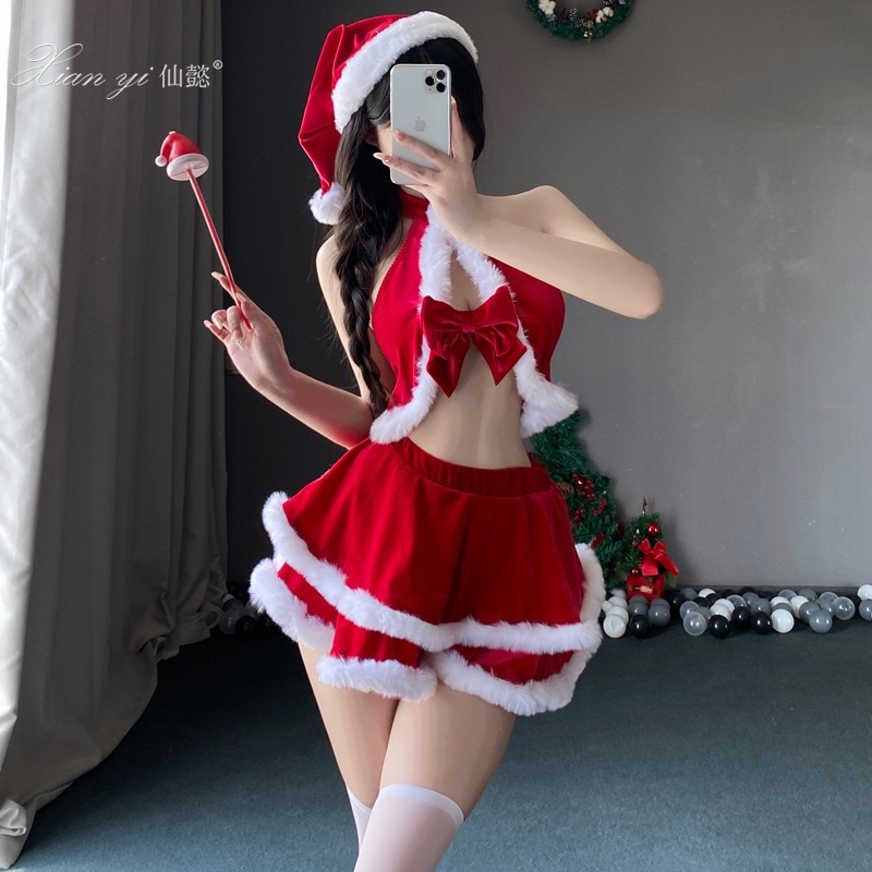 早い者勝ち クリスマス 純欲風 エロいコスプレ かわいい 首掛け赤いキャミソールワンピースセクシークリスマスコスプレ舞台衣装