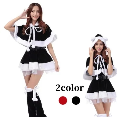 作サンタコスプレレディース黒サンタネコ耳ポンチョクリスマスサンタコスプレ黒セクシーブラックサンタクリスマスコスプレサンタコスサンタ衣