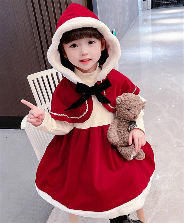 サンタ服 クリスマス衣装 コスプレ 女の子 ワンピース 秋冬 子供服 防寒 赤ずきんちゃん 衣装 子供 サンタ ハロウィン コスチューム キッズ サンタクロース 厚手 2点セット ケープ付き マント
