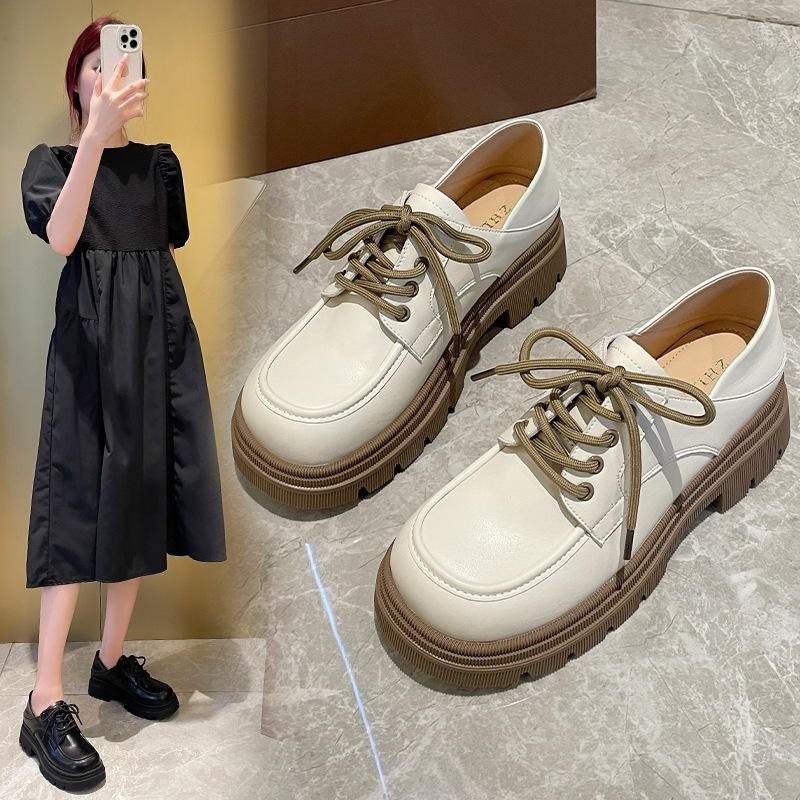 厚底ローファー 厚底幅広太もも小さめレザーシューズ チャンキーヒールレースアップカレッジスタイルローファー 大きいサイズの婦人靴 ローファー