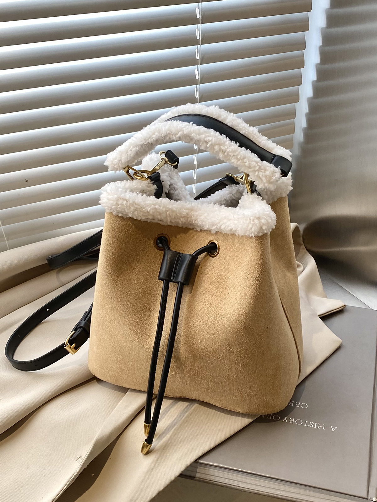 冬のレトロなすりつぶしバッグ女性2024新作おしゃれなショルダーバッグモコモコ手提げバケツバッグ ショルダーバッグ
