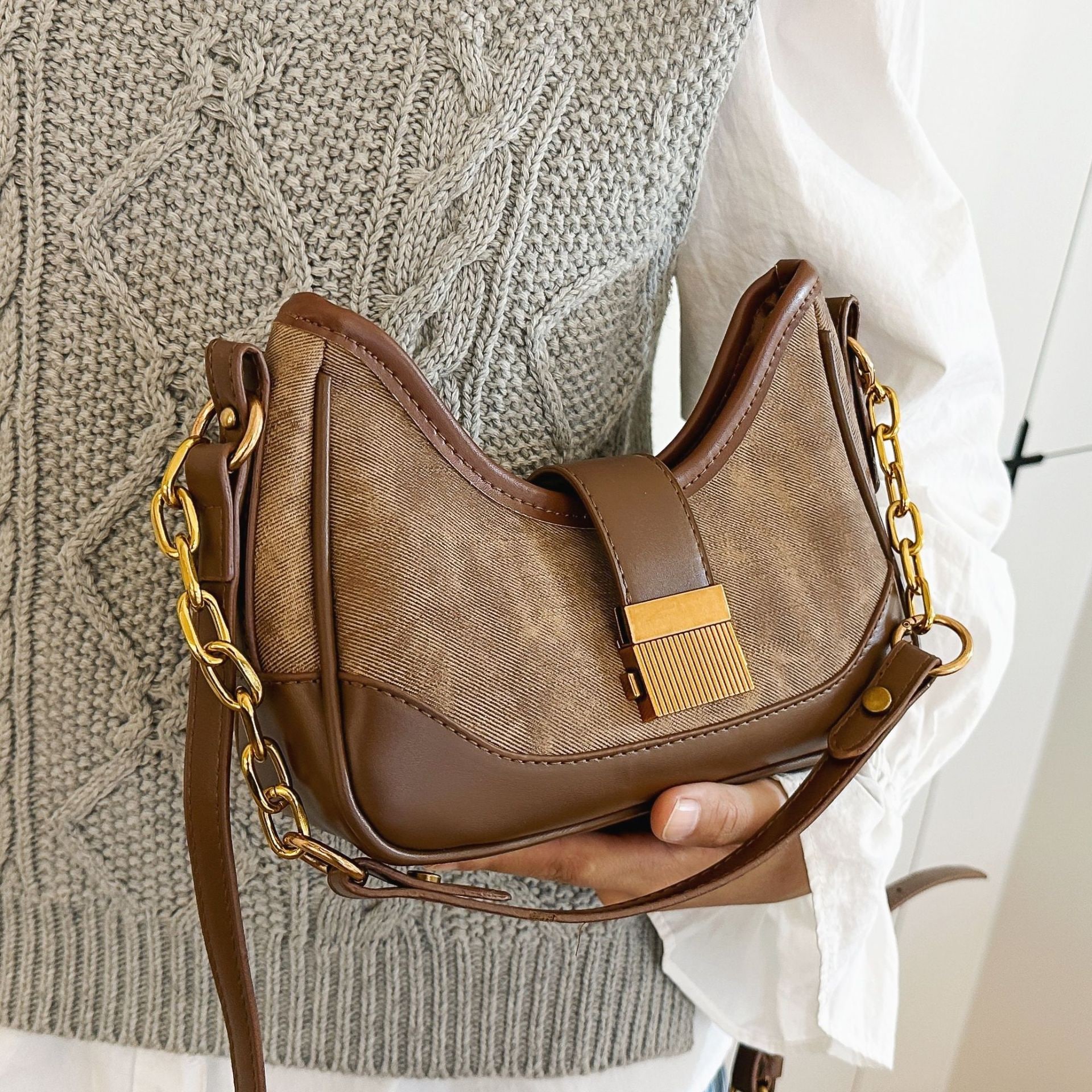 おしゃれカジュアルミニバッグ韓国版insトレンド高級感ショルダーバッグ2024秋冬新作おしゃれ斜め掛けレディースバッグ ショルダーバッグ