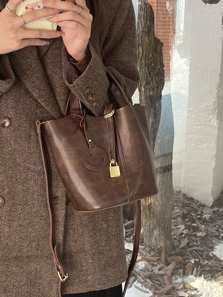レトロなハンドヘルド野菜バスケットバッグ女性秋と冬の新潮ファッションバケツバッグ百クロスボディバッグ付き ショルダーバッグ