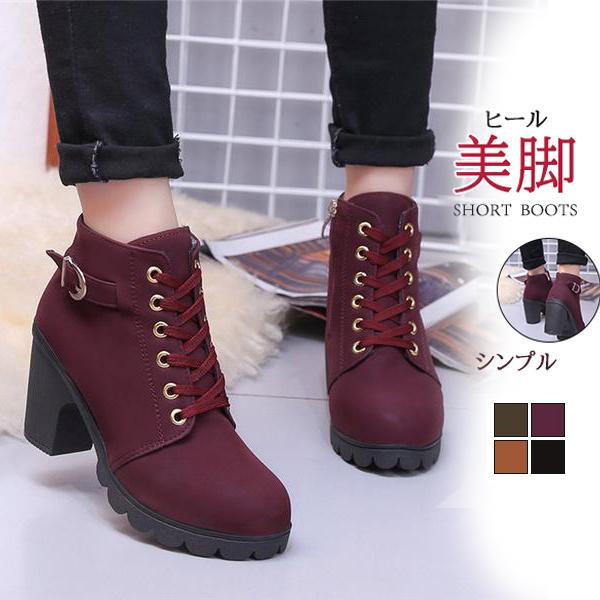 レディースレース切り替えブーツ 履き心地のヘビロテブーツ ハイヒール ショートブーツ ショート ミドルブーツ