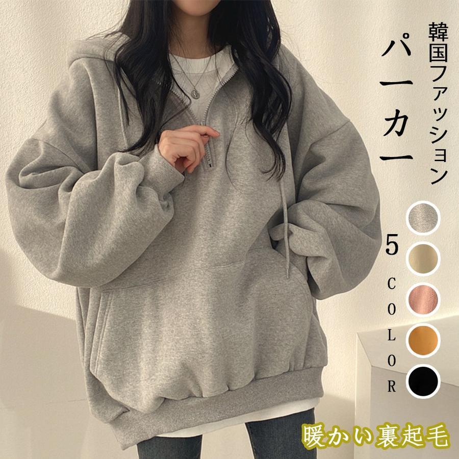 ハーフジップ 裏起毛 パーカー レディーストップス スウェット パーカー 韓国チャック付き 無地 韓国ファッション バーカー韓国 ジッブ バーカー パーカー レディースグレー パーカーレディースグレ