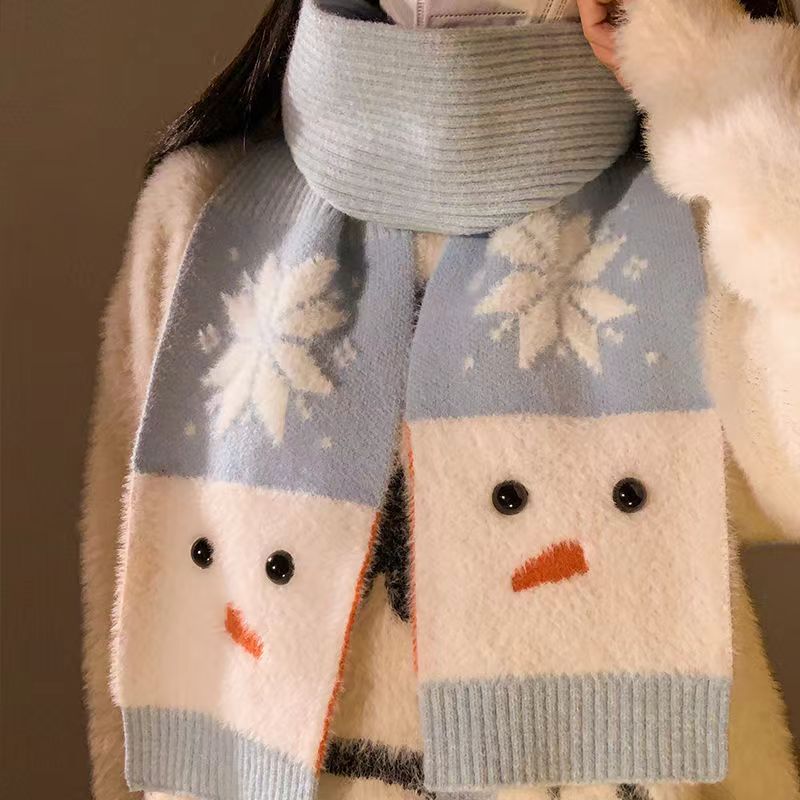 両面雪だるまニットマフラー女2024新型冬の韓系雰囲気感保温防寒ネックガードカップルマフラー スヌード