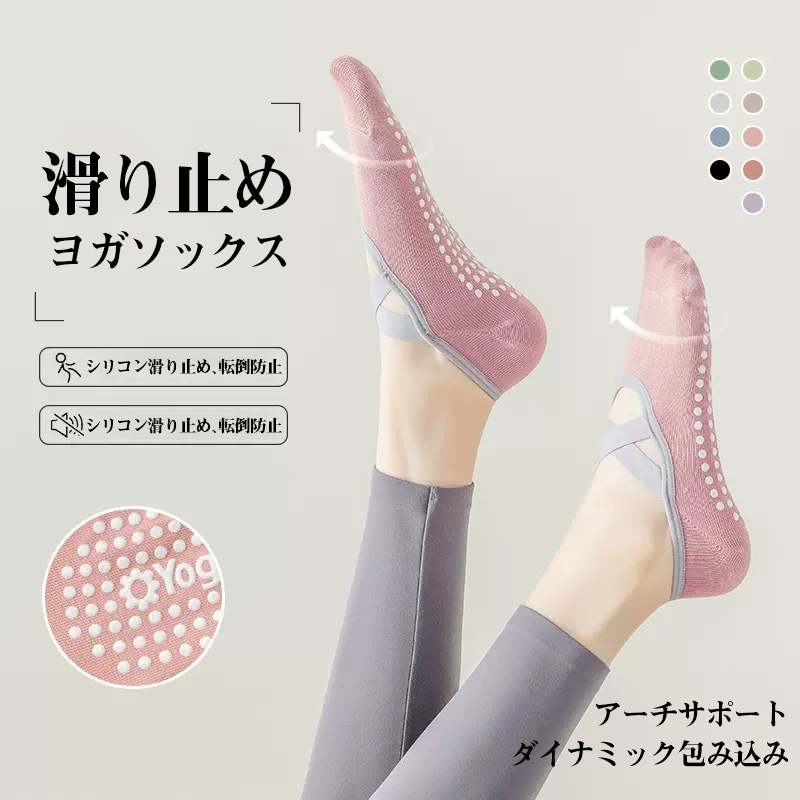 シリコン滑り止めヨガソックス アーチサポート付き靴下 転倒防止&通気性良い クロスバンドデザイン ストレッチ素材でフィット ヨガ ピラティス ダンスに良い