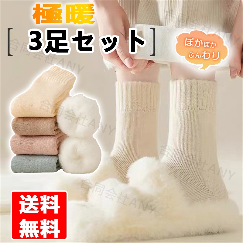 裏起毛靴下 あったか 3足セット 靴下 レディース リブ 裏起毛 ふんわり 厚手 暖か 防寒 冬 秋冬 冷え取り靴下 かわいい