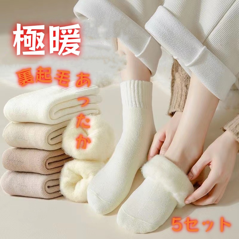 靴下 レディース ソックス 5足セット 防寒 厚手 裏起毛 もこもこ 暖かい ボア 冷え性対策 フリース 暖かい 保温 可愛い 抗菌 防臭 秋冬