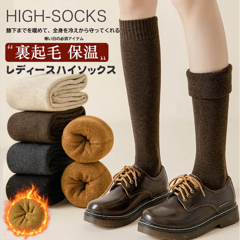 3足セット ソックス 靴下 レディース ハイソックス 秋冬 あったか靴下 冷え取り靴下 ゆったりハイソックス スクールソックス 美脚 裏起毛 防寒 暖かい コットン