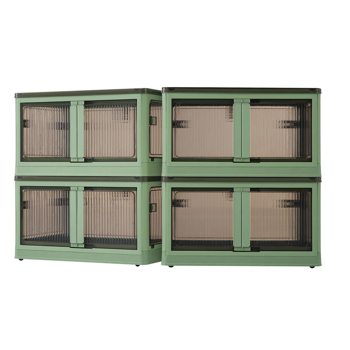 収納ボックス 4個セット 収納ケース 折りたたみ 5面開き 積み重ね 蓋付き 扉付き 組み立て簡単 省スペース キャスター付き おしゃれ 強い耐荷重 大容量 家庭用 車用 Green Plastic