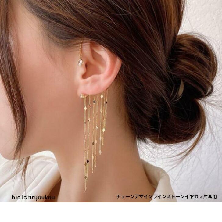 イヤカフチェーンデザインラインストーンゴールドイヤカフ片耳用おとな華やかピアス30代40代50代 ピアス