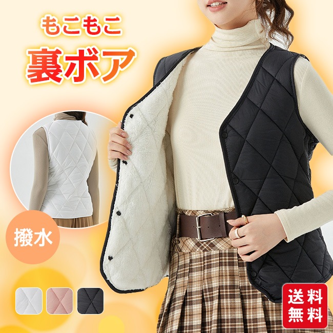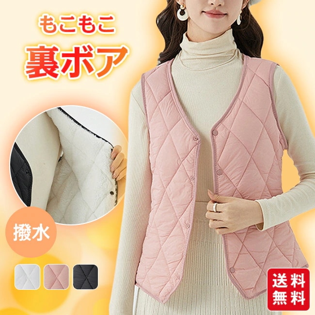 ベスト 裏ボア レディース おしゃれ あったか 暖かい もこもこ 厚地 秋冬 ルームウェア キルティング 撥水 洗える かわいい 裏起毛 大きいサイズ 重ね着
