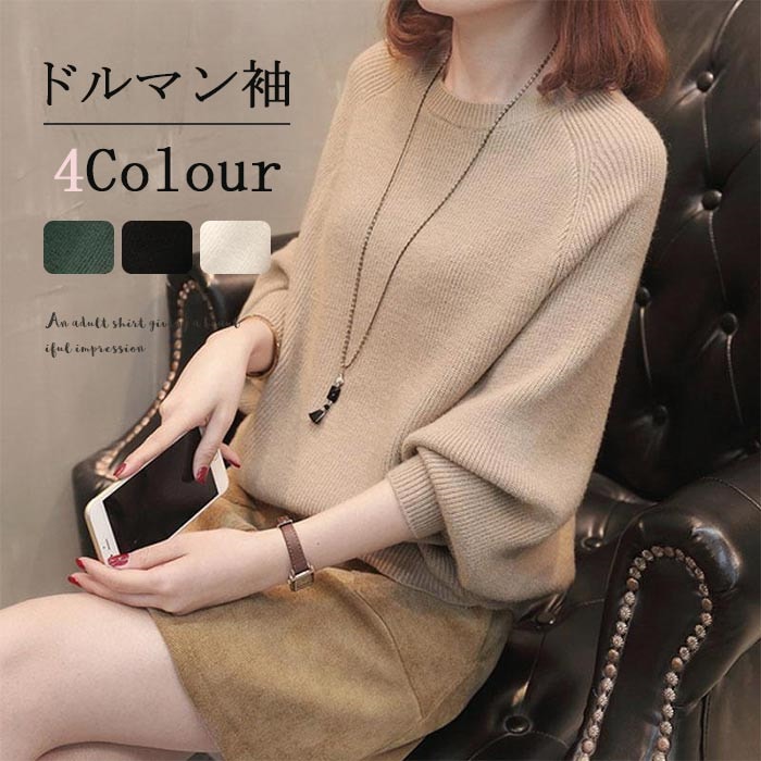 セーター ニット レディース ニットセーター ドルマンスリーブ ニットトップス 秋冬 無地 ショート丈 セーター ドルマン袖 バルーンスリーブ 無地 ドルマン袖セーター 柔らかい ゆったり ニットセー
