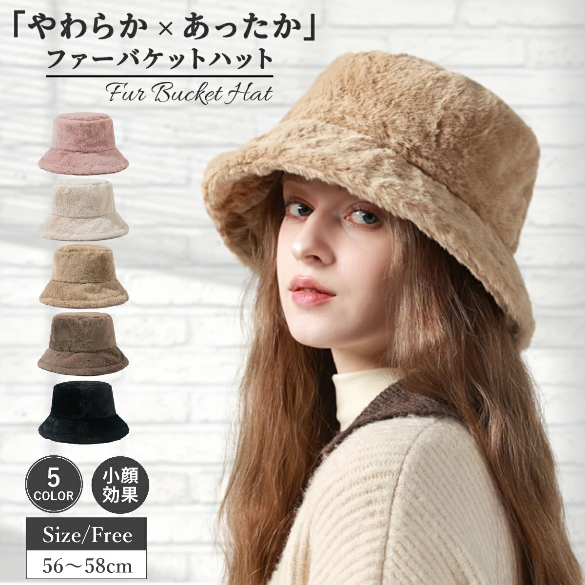小顔効果 ファーバケットハット ハット 帽子 バッグ・雑貨