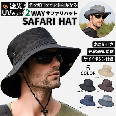 サファリハット 帽子 日焼け防止 日よけ メンズ 首 紫外線 UVカット 日除け おしゃれ つば広帽子 ハット 2WAY テンガロンハット 日よけ帽子 夏 UV 冬 アウトドア