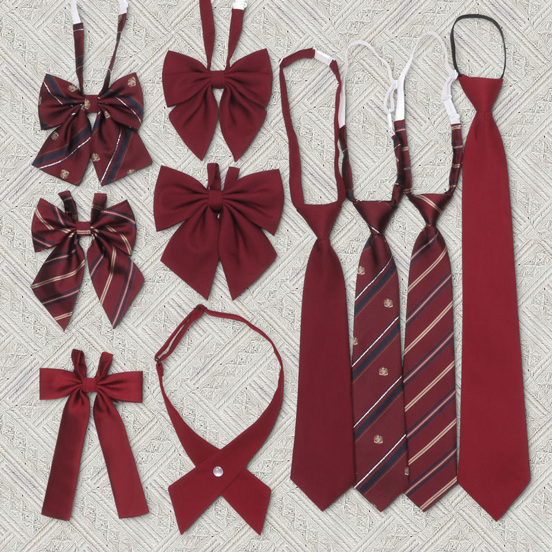 赤い縞模様の格子縞の怠惰な男は日本の大学スタイルから解放されます JK ネクタイ女性卒業写真学士制服蝶ネクタイ蝶結び 細ネクタイ ネクタイ