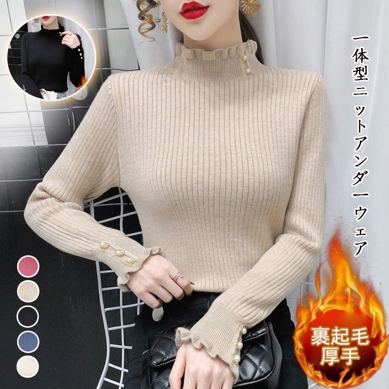 カシミヤタッチ一体型 秋冬 裏起毛季候 ウォーム ハイネックニットアンダーウェアベーシックニット 裏起毛フアッション 人気なリプニット ニット
