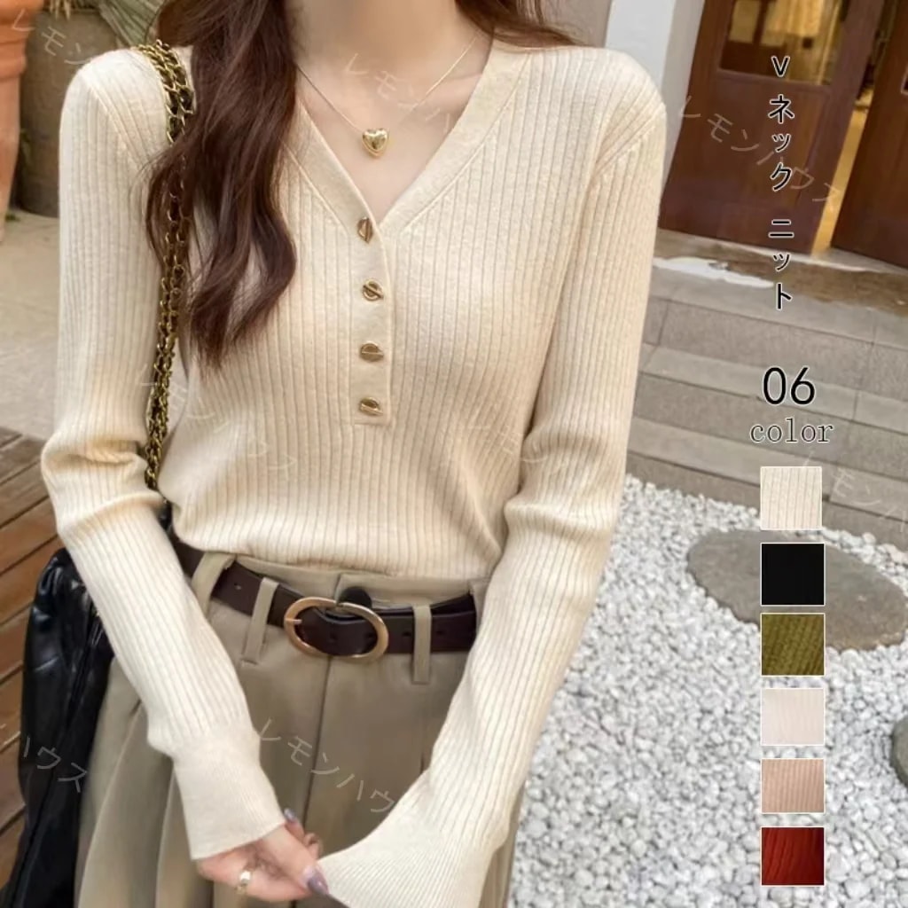 人気なリブニット ジャンパー レディース 秋冬 ソフトニット Vネック トップス ニット