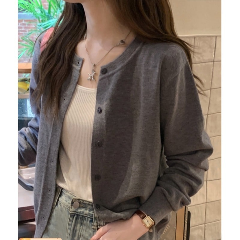 韓国ファッション 透かし彫り ラウンドネック 人気なリブニット 人気なリブニット ニットカーディガン 厚手 ベーシックニット 裏起毛 セミロング ニット 長袖 レディース