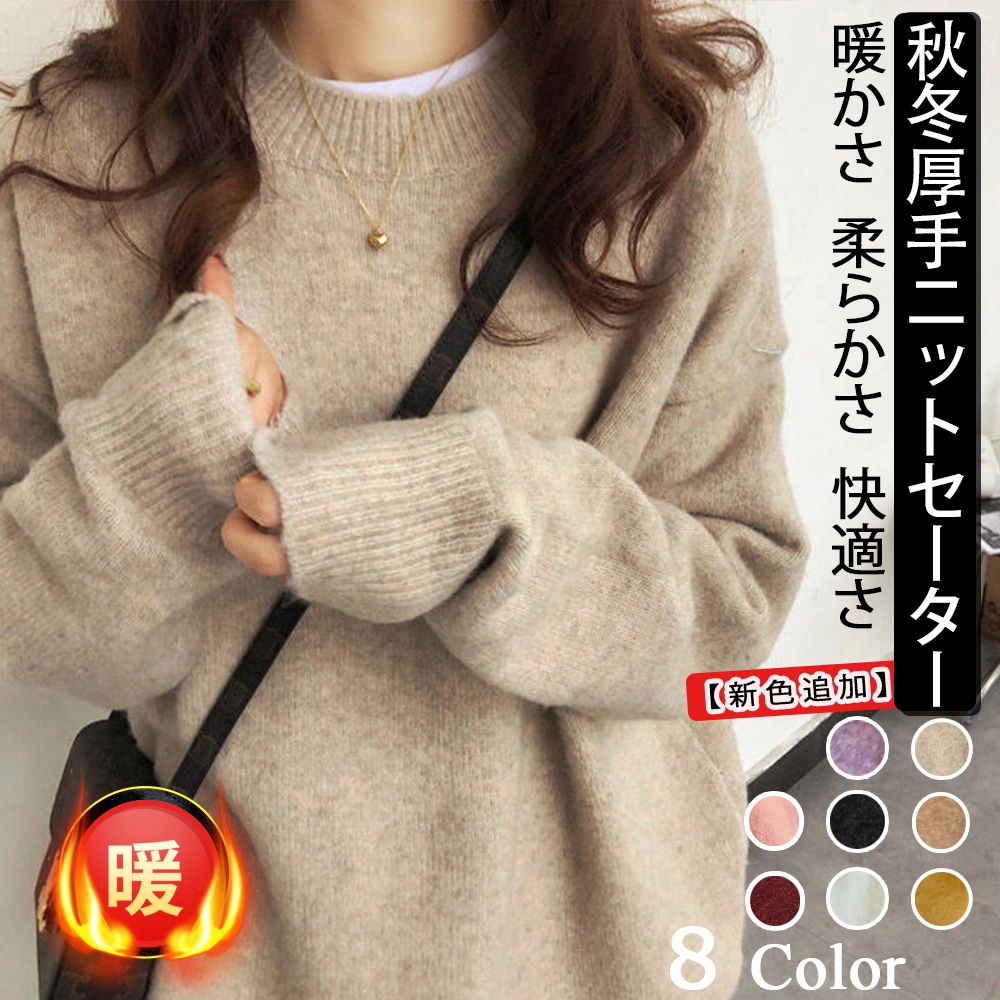 韓国人気商品 厚手 ニット服 セーター 女性 冬アウター ルーズ セーター 大サイズ カシミヤタッチ 無地 厚手シャツ 秋冬 韓国ファッション レディース ファッション ベーシックニット