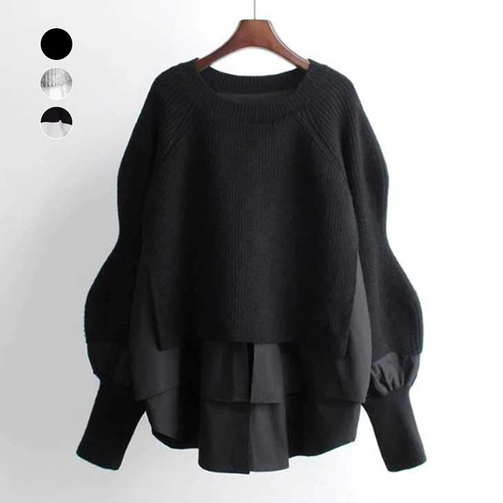 トップス 異素材 切り替え ニット セーター 長袖 レイヤード風 ドッキング 重ね着風 おすすめ レディース オシャレ 人気 プチプラ 韓国ファッション 2024秋冬新作