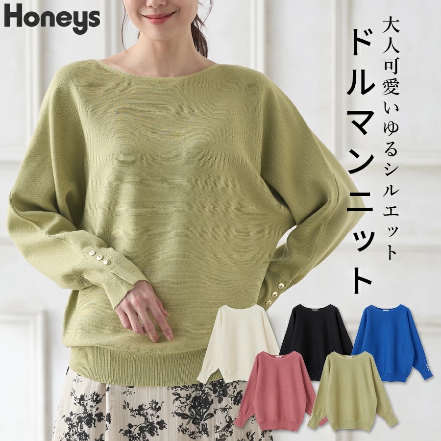 Honeys ドルマンニット トップス ニット セーター 長袖 ドルマン袖 ボートネック 無地 ニット