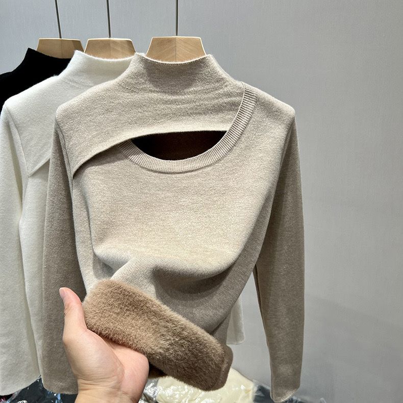 セミハイネックジャンパー 女性 中綿入り 厚手 秋冬 インナー 大きいサイズ ゆったり 暖かい トップス ボトムス ニット セーター 新作 ニット