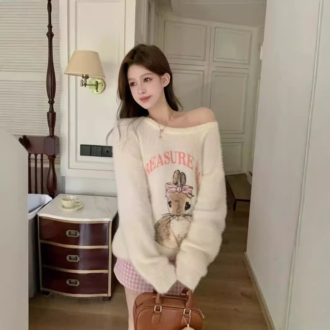 秋冬のセーターの袖の女性の柔らかいモチモチのウサギの甘いニットの上着 ニット