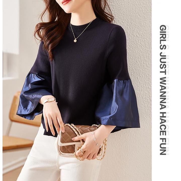 春 秋 長袖 ブラウス ニット ドッキン ニット トップス レディース服