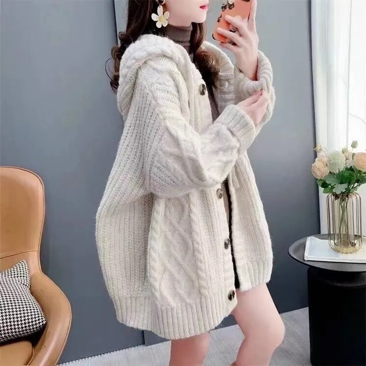 ニットカーディガン 韓国ファッション フード付き ツイスト チェスターコート人気なリプニット アンダーウェア ハイネック ベーシックニット ニット カーディガン セーター 厚手 裏起毛 ニット セータ