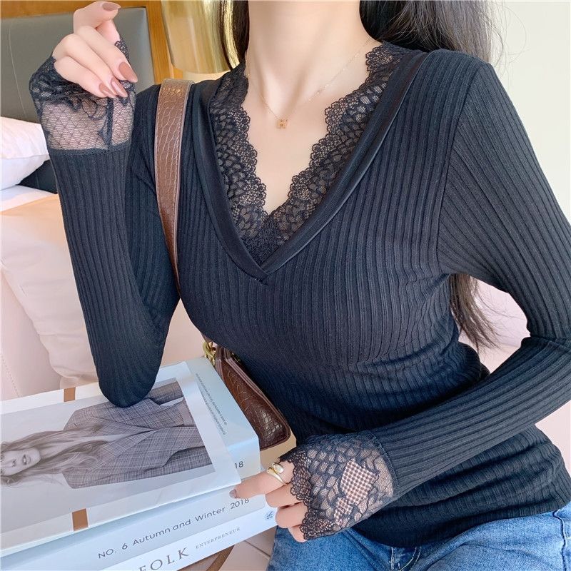 人気なリブニット韓国ファッション裏起毛ニットセーター 秋冬 Vネック ニットカシミヤタッチトップス裏起毛インナー百掛け セーターレディース裏起毛ファッション