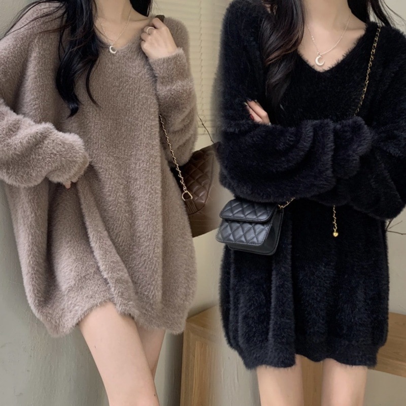 人気なリブニット 人気 もこもこ ニットトップス フェイクミンク毛 セーター レディース カシミヤタッチVネック 着痩せ ニットセーター 甘い 気質 ゆったり 怠惰な風 大きいサイズ